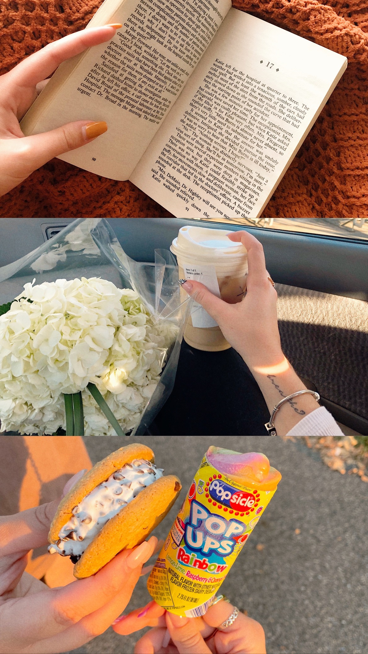 Sitting in the car with the windows down on a beautiful day, while drinking your favorite coffee and something beautiful to go with it.